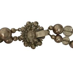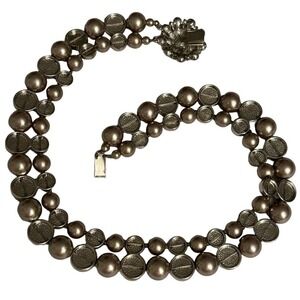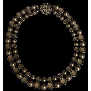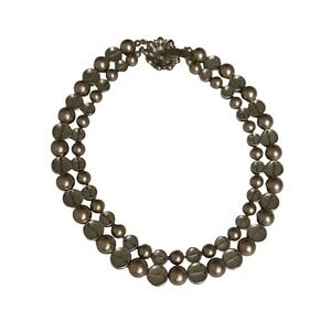 BANANA REPUBLIC 2 Strand Glass Moonstone and Faux Pearl Choker Necklace 16"