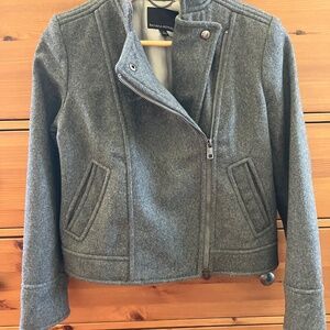 BANANA REPUBLIC 80% Italian Wool Blend Grey Moto Jacket XS P Petite