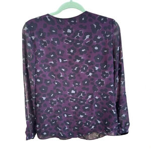 Pre owned like new. Purple animal print blouse. Sheer long sleeves. WOMENS size medium petite.
