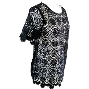 BANANA REPUBLIC BLACK LACE CROCHET TOP SZ XS 0 2