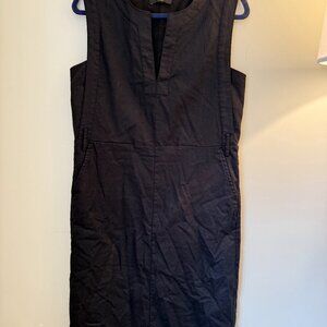 BANANA REPUBLIC BLACK LINEN-COTTON MIDI SHIFT DRESS