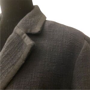 This sophisticated black textured double-breasted blazer is perfect for any occasion.