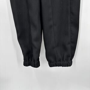 Chic black jumpsuit with see through mesh inserts, elastic waist, elastic ankles. Very versatile. Can be worn for cocktail party or at work with a blazer.