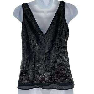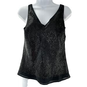 BANANA REPUBLIC Black Silk Wool Sequin V-Neck Sleeveless Blouse Tank Top S