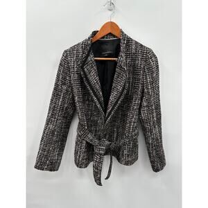 BANANA REPUBLIC Black Tweed Collared Tie Waist Blazer Jacket // S
