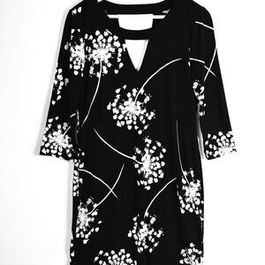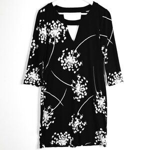 BANANA REPUBLIC Black & White Pattern Long Sleeve V-Neck Dress - Size Small