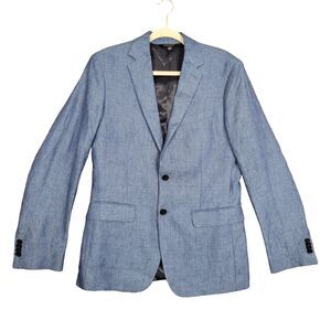 BANANA REPUBLIC Blue Linen Slim Fit Notch Lapel Double Vent Blazer Jacket 38R