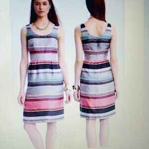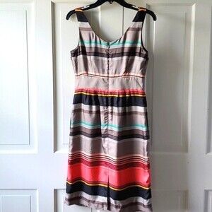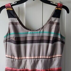 BANANA REPUBLIC WASHABLE SILK STRIPE TANK SHEATH DRESS GRAY CORAL BLACK SIZE 2
