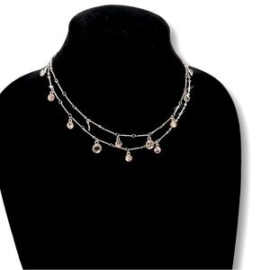 This Banana Republic long silver layering necklace features delicate glass charms for a touch of sparkle and sophistication. Brand new with tags (NWT), this versatile piece is perfect for layering, adding an elegant and stylish accent to any outfit.