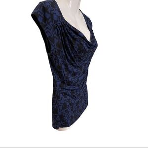BANANA REPUBLIC Cuffed Sleeve Blouse Print Pattern Blue and Black Top Size XS
