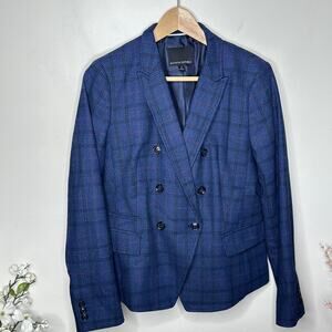BANANA REPUBLIC Double Breasted Plaid Blazer Blue Indigo
