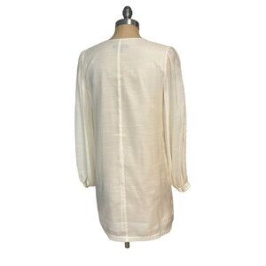 BANANA REPUBLIC Dress Ecru Ivory Long Puff Sleeve Woven Button Up Shift XS