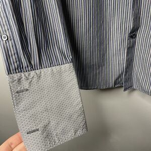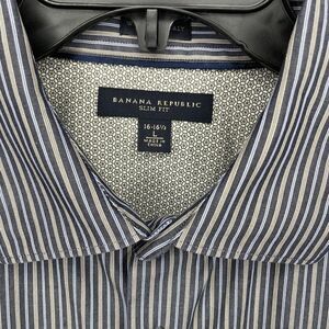 BANANA REPUBLIC Dress Shirt Mens 16-16.5 Large Gray Stripe Slim Fit French Cuffs