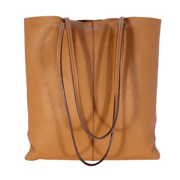 The perfect day tote, designed with a low-profile shape so it packs flat, made in sturdy, luxe leather. Magnetic snap closure.Two inner slip pockets. MSRP: $98.