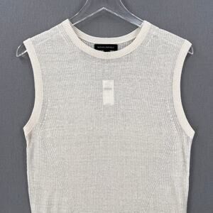 BANANA REPUBLIC Eliza LInen Blend Muscle Tank Top Small Cream Sleeveless Ribbed
