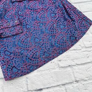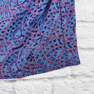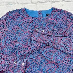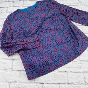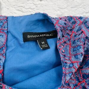 BANANA REPUBLIC Embroidered Lace Long Sleeve Blouse Medium Blue/Red Round Neck