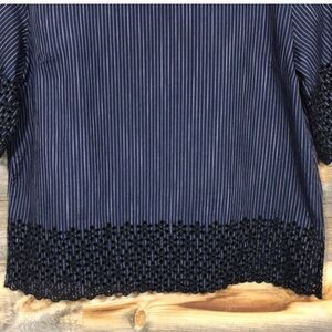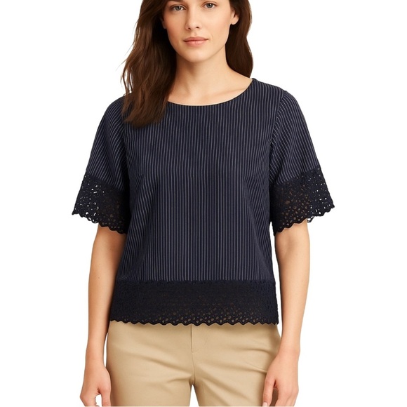 Cute BR Eyelet Tapestry Crop top in Navy cotton with vertical pinstripes.