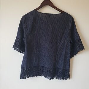 BANANA REPUBLIC Eyelet Tapestry Navy Boxy Crop Top Size Small