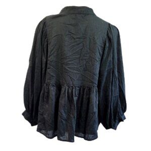 BANANA REPUBLIC FACTORY Black Puff Sleeve Baby Doll Blouse Women's M Petite