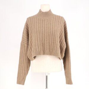 BANANA REPUBLIC FACTORY Cropped Cable Turtleneck Sweater Mocha Latte Heather Size L