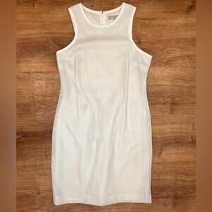 BANANA REPUBLIC Faux PU Leather Lined CN Back Zip Sleek Laser Cut Mini Dress 4
