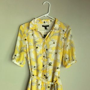 BANANA REPUBLIC yellow floral dress. Buttoned up front with waist tie. Asymmetrical maxi shirtdress. Price is firm.