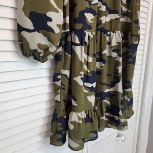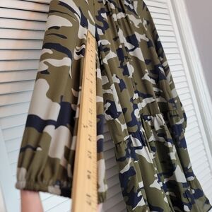 BANANA REPUBLIC FACTORY Green Camo Mini Layered Dress Long Sleeve Drop Waist