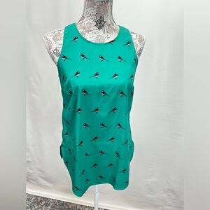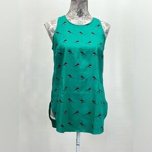 Sleeveless green top with bird motif from BANANA REPUBLIC, size XS. Has zip back closure.