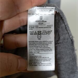 Light grey long sleeve crewneck merino wool sweater with red lips detail at the chest by Banana Republic. Style 268011