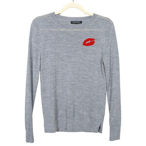 BANANA REPUBLIC Grey Merino Wool Crewneck Sweater Red Lips Detail Women's XS