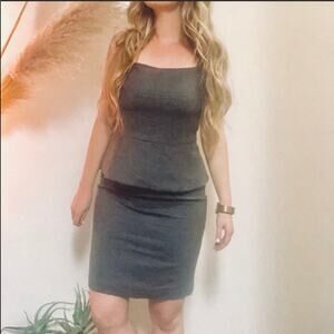 BANANA REPUBLIC Grey Wool Peplum Midi Dress Tank Top Strap Pencil Skirt 8