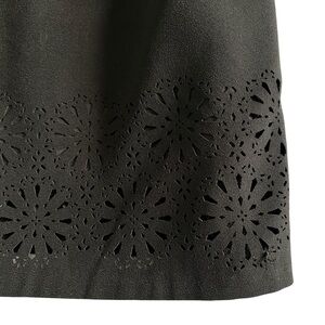 Scoop neckline w/ a gorgeous floral laser cut detail hem.