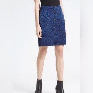 BANANA REPUBLIC Leopard Print Skirt Button Front Blue 2