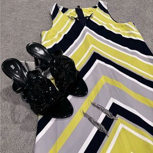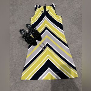 BANANA REPUBLIC Lime/Gray/Black Chevron Striped Sleeveless Sheath Drs Sz 4 EUC
