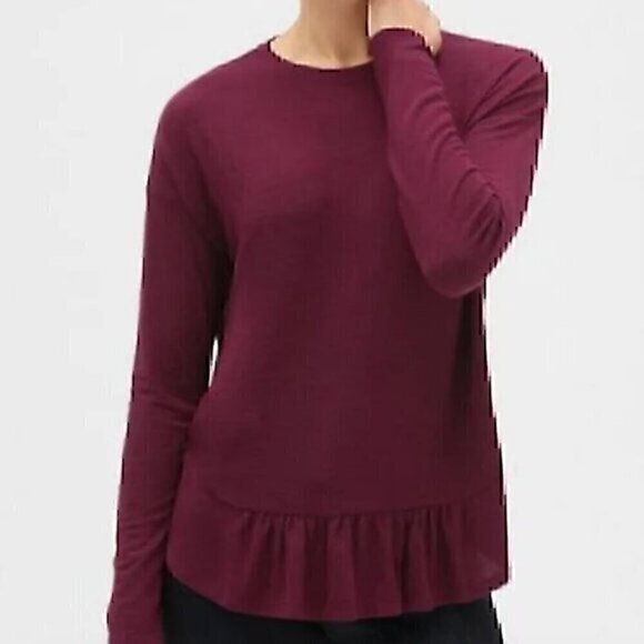 BANANA REPUBLIC Long Sleeve Ruffle Hem Top Burgundy Maroon Wine Red Blouse XS