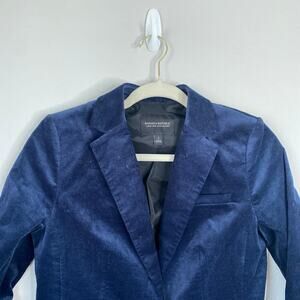 BANANA REPUBLIC Long and Lean Blazer Blue Velvet Size 2 Holiday Party Navy