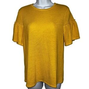 BANANA REPUBLIC Luxespun Flutter Sleeve Top Mustard Yellow NWT $40 Size XS
