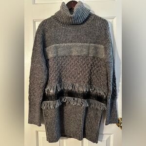 BANANA REPUBLIC Med VINTAGE Mixed Textile Wool Alpaca Chunky Fringe Turtleneck