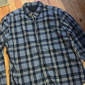 BANANA REPUBLIC Men's Blue Plaid Luxe Flannel Slim-Fit Button-Up Shirt SZ XL