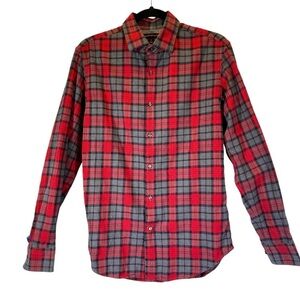 BANANA REPUBLIC Men's Small Red Gray Plaid lightweight flannel button up shirt