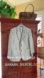 Notch collar with button hole on wearer's left panel. Four non-functioning buttons at cuffs.
