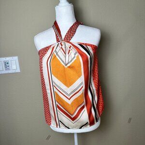 BANANA REPUBLIC Mixed Print Silky Satin Halter Top Size Small Petite