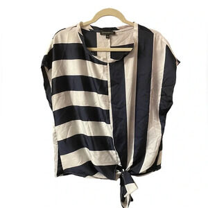 BANANA REPUBLIC NAVY BLUE STRIPED TIE FRONT BLOUSE