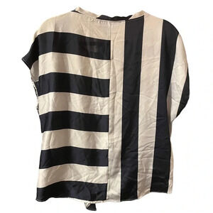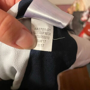 Pre owned super cute blue and white striped blouse with tie front. Excellent condition. WOMENS size large. Perfect summer blouse!