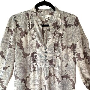 BANANA REPUBLIC | NWOT FLORAL RUFFLE PLEATED TUNIC TOP SPLIT FRONT | SMALL