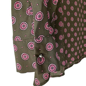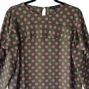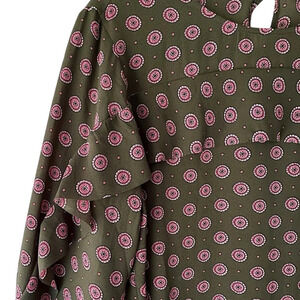 BANANA REPUBLIC NWOT PRINTED RUFFLE FRONT BLOUSE TOP LONG SLEEVE | MEDIUM