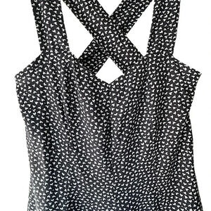 BANANA REPUBLIC NWOT SLEEVELESS DRESS CROSSOVER STRAPS NAVY BLUE WHITE | 12