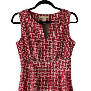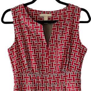 BANANA REPUBLIC | NWOT SLEEVELESS RED GEOMETRIC SHEATH DRESS SPLIT NECK | SIZE 4