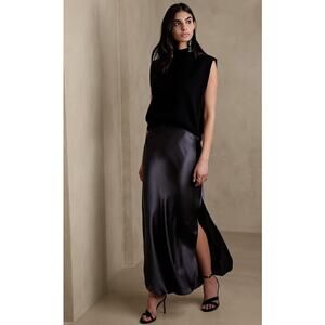 BANANA REPUBLIC NWT Dreamer Silk Maxi Skirt Black High Slit Unlined Women's 2XS