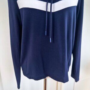 BANANA REPUBLIC Navy & White Colorblock Baby Terry Funnel Neck Pullover Size M